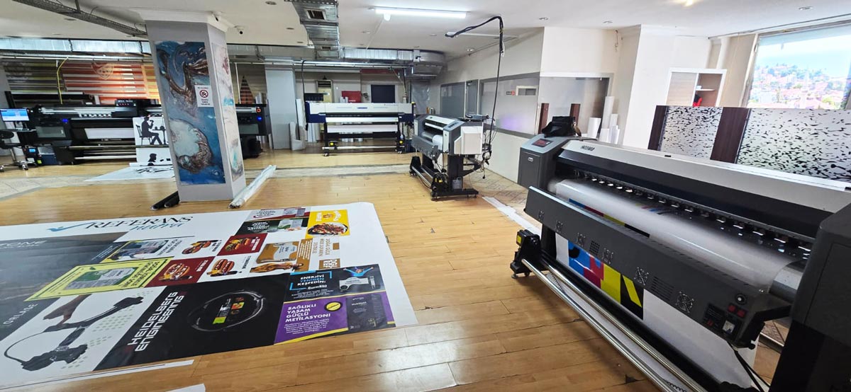 UV Baskı bölümünde yüksek teknoloji basketbol baskı makineleri, 5 metre UV baskı bakayım, 3.20 UV baskı makinesi, kabartmalı baskı yapma teknolojiine sahip UV baskı makinesi ile UV baskıda en kaliteli baskıları gerçekleştiriyoruz.